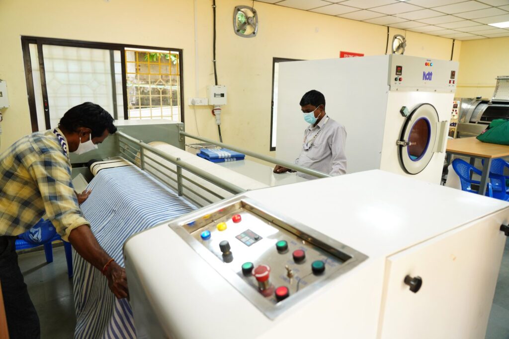 Hospital Laundry aims to provide an adequate supply of clean Linen for the comfort and safety of the patient. The following equipments are available in the laundry service.